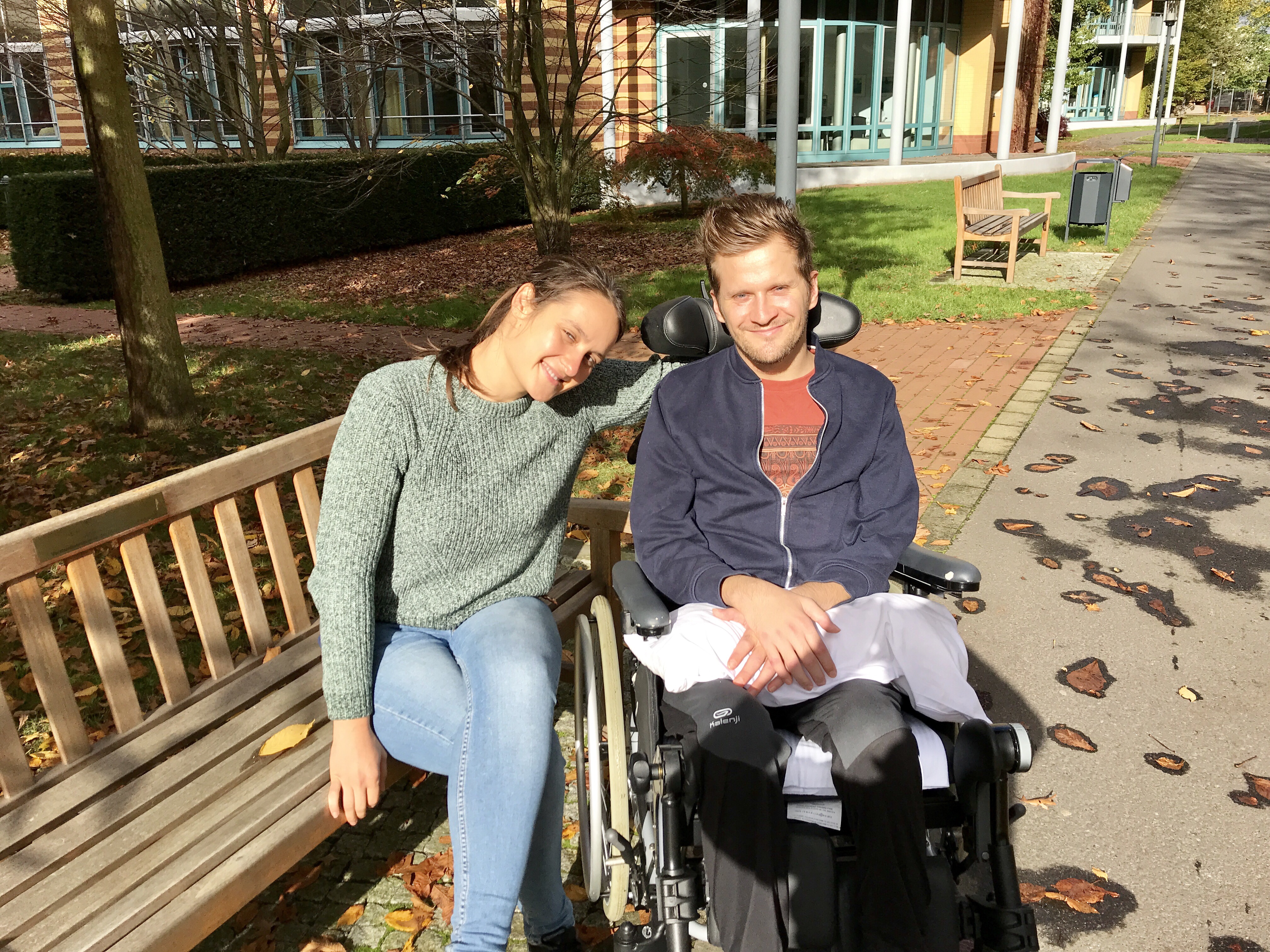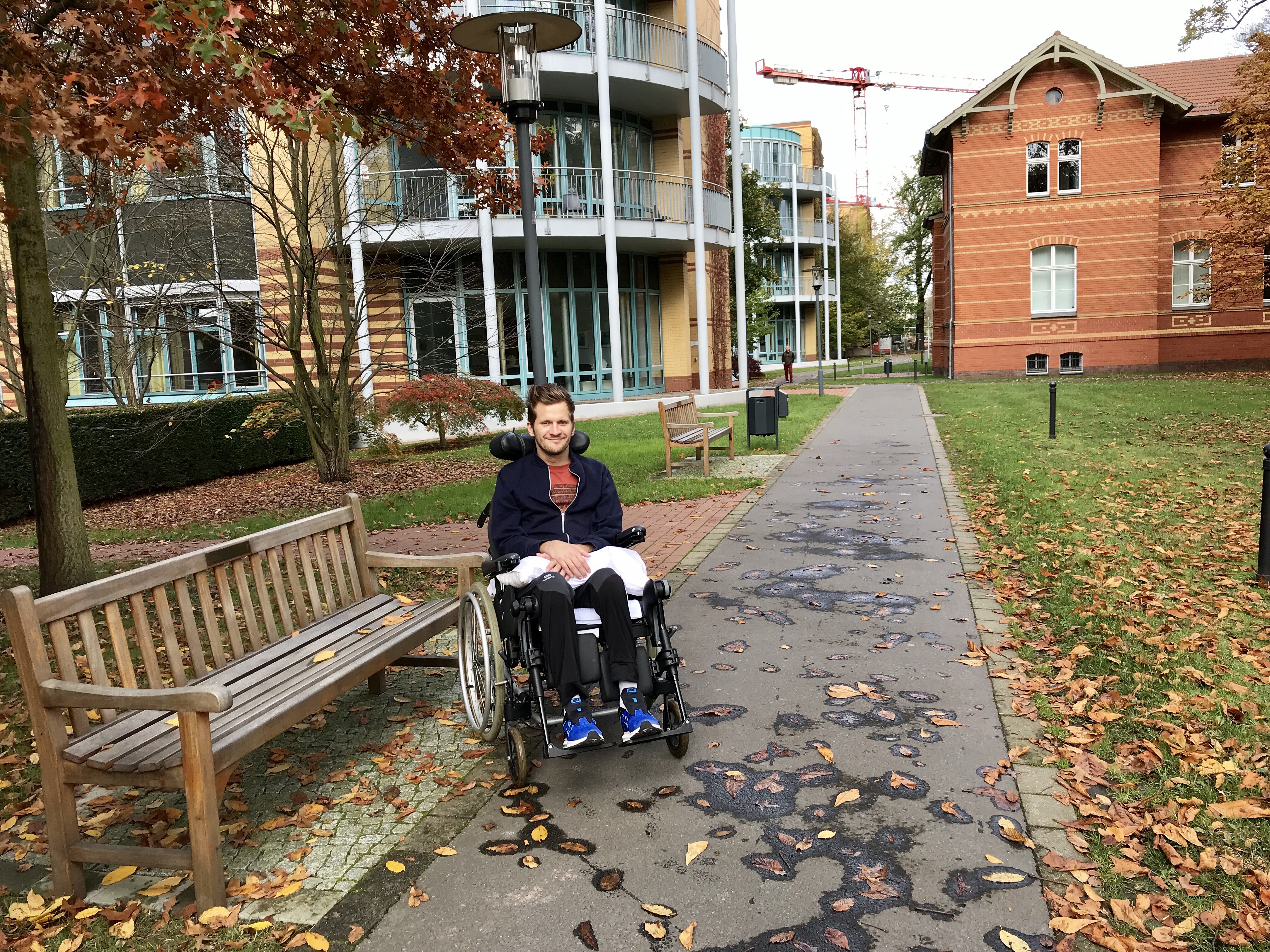 We met another quadriplegic patient Nico when we went outside. He told how he is using a computer with the mouth mouse stick and that he likes playing computer games a lot. Nico mentioned that using computer is fully possible, slower when typing text, but anything else can be proceeded easily. That is a huge motivation for us. Jan wants to come back to his work, which is his passion, as soon as possible and this looks very much doable.