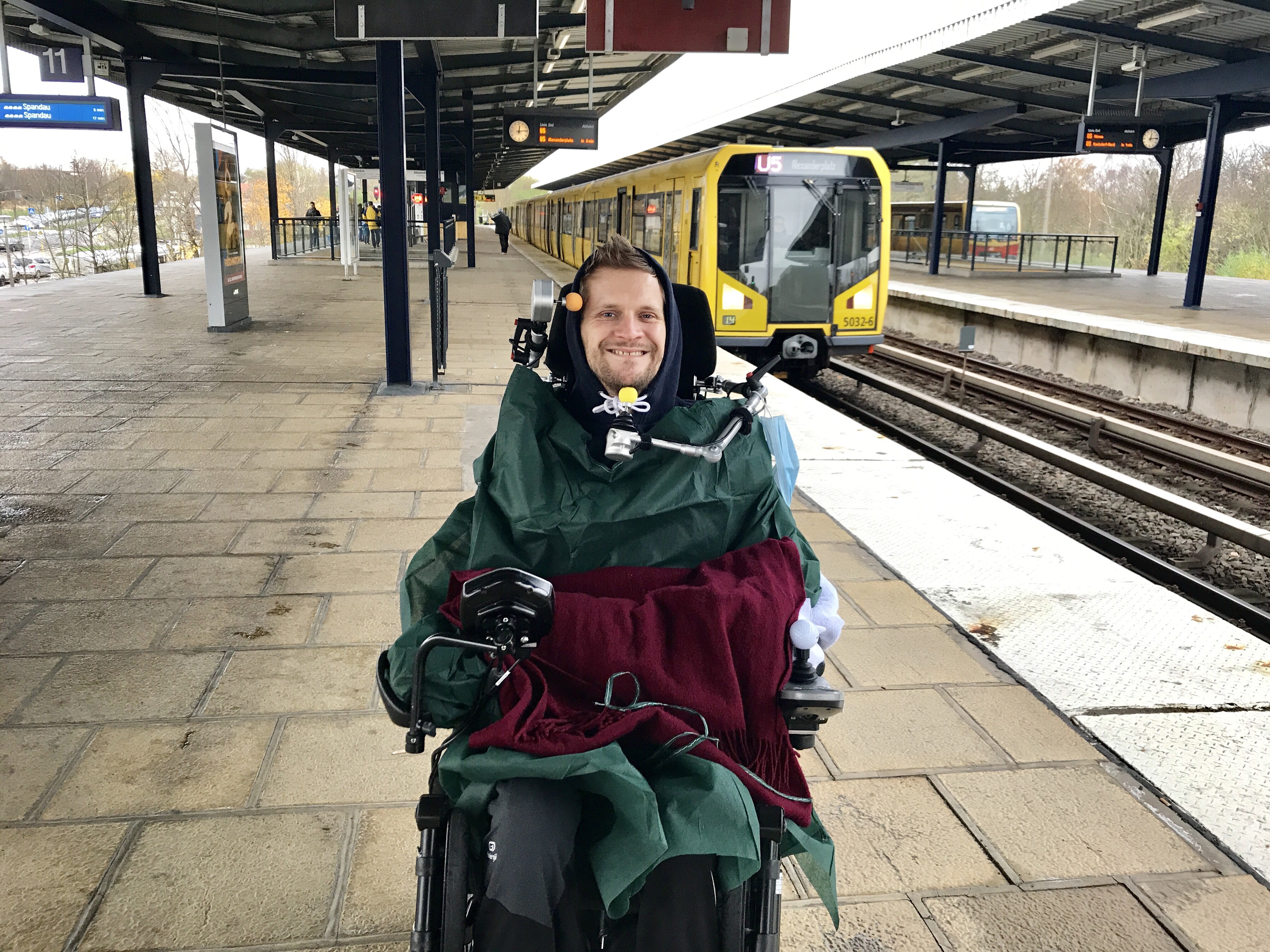 Today Jan achieved one of his small goals. Since a while he was mentioning that he wishes to see the S-bahn. If you want to watch Berlin trains (called S-bahn) you must to leave hospital and to walk around 2 km. Last week we were seeing trains from the distance, because Jan was sitting in a different wheelchair and we couldn’t reach the station so easily. But today Jan was truly determined to make his goal, even when after first 50 meters I started to complain that it’s s really cold and the path is not so straight to drive with a wheelchair.