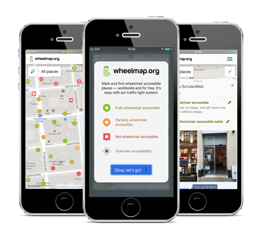 Wheelmap is a user-generated website and app that rates locations and businesses on their wheelchair accessibility.